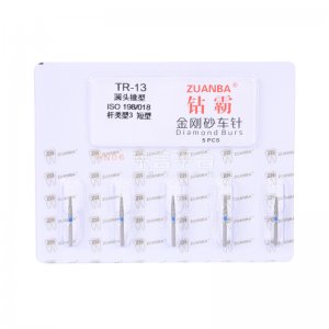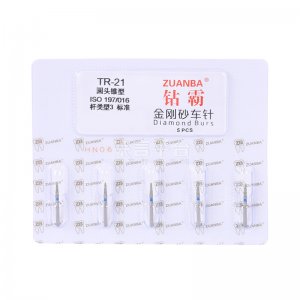 【結(jié)構(gòu)及組成】由車針柄和工作部分組成。其中車針柄由不銹鋼材料制成,工作部分鍍有金剛石顆粒。